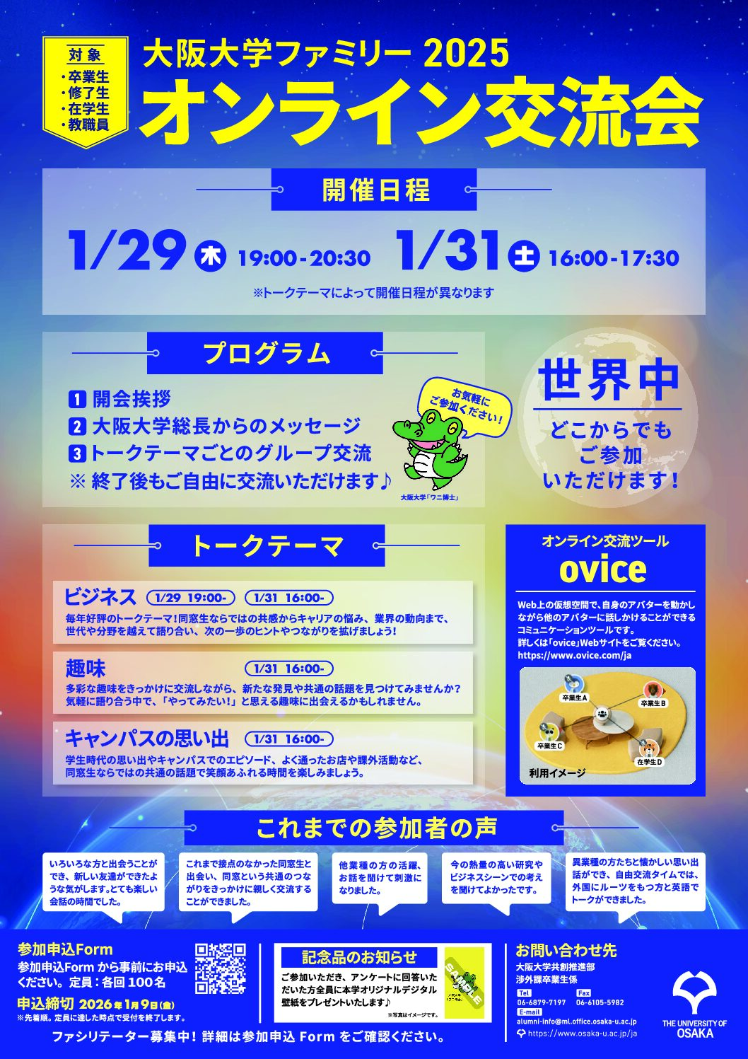 「大阪大学ファミリー2025オンライン交流会」のご案内